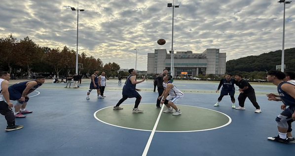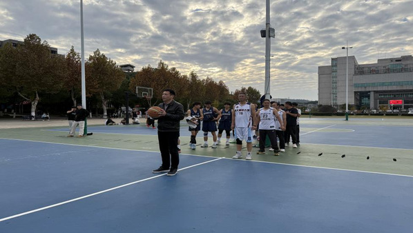 本网讯 为营造积极向上的班级文化,2025级研究生班于11月12日在校篮球场举办第二次团建活动——师生篮球友谊赛。体育学院院长周曙为比赛开球,副院长朱施成、球类教研室主任胡安义及田广、李明明、杨坤、高永奇等教师共同参与。