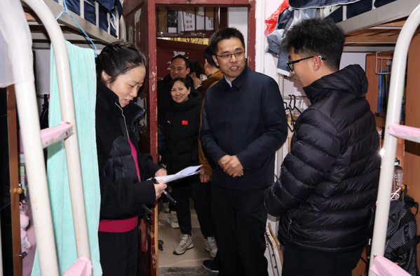 本网讯春回校园,情暖人心。为第一时间掌握学生返校后的思想动态,排除宿舍安全隐患,将学校的关怀精准送到学生身边,3月1日晚,体育学院组织开展新学期宿舍走访活动。校党委常委、副校长刘美风在学院领导班子、全体辅导员、班主任及学生干部代表的陪同下,深入学生宿舍,看望慰问返校学子。