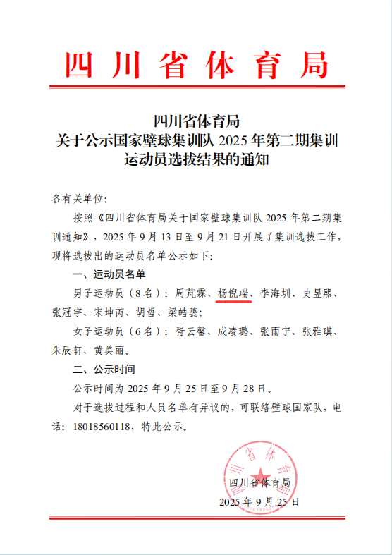 此次入选国家集训队,既是对杨倪瑞同学个人竞技能力的高度认可,也是我校体育人才培养工作成效的具体体现。近年来,体育学院持续加强体育专业建设和人才培养,为优秀运动员的成长提供了有力支持。杨倪瑞同学的入选,将进一步激励更多学子刻苦训练、勇攀高峰,为学校争光,为国家体育事业发展贡献力量。