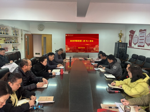 本网讯 3月5日,体育学院召开党委会(扩大)会议,深入学习贯彻习近平总书记关于树立和践行正确政绩观的重要讲话与指示精神,落实中央及省委相关会议要求,对学院学习教育工作进行安排部署。党委书记胡燕生主持会议,全体班子成员、支部书记、办公室主任、系部主任及教研室主任参加会议。