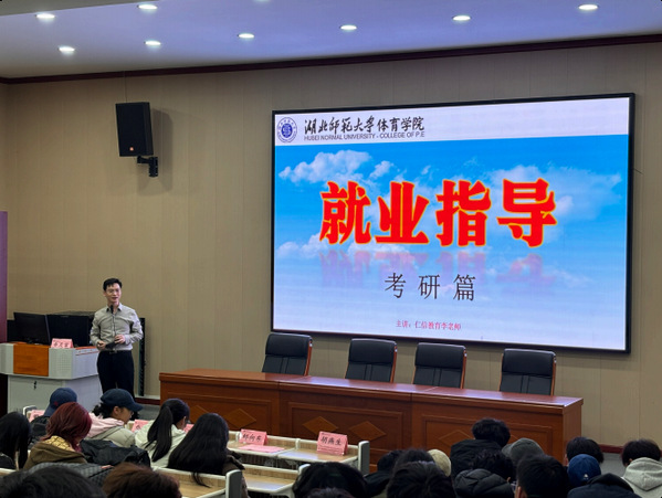 本次动员会还邀请到仁信教育李老师开展考研专题指导。李老师围绕体育类考研的独特性,详细分析了体育类单独划线政策,提醒同学们报考时注重技巧、择校不宜盲目求高。他强调,考研不仅是为了获得一张录取通知书,更是对学习习惯、学习能力和意志力的全面锤炼,这一过程本身就是宝贵的成长。